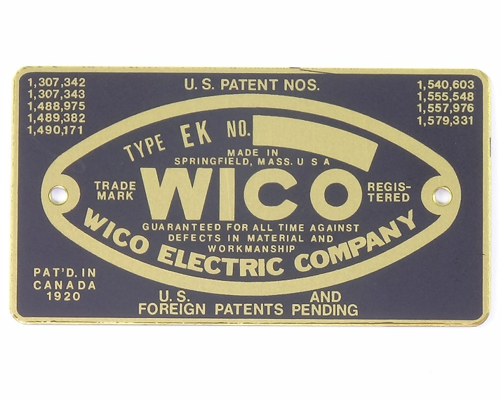 3″ Nameplate Used On WICO EK Magnetos. Comes with 2 new brass rivets for installing on cover band.
