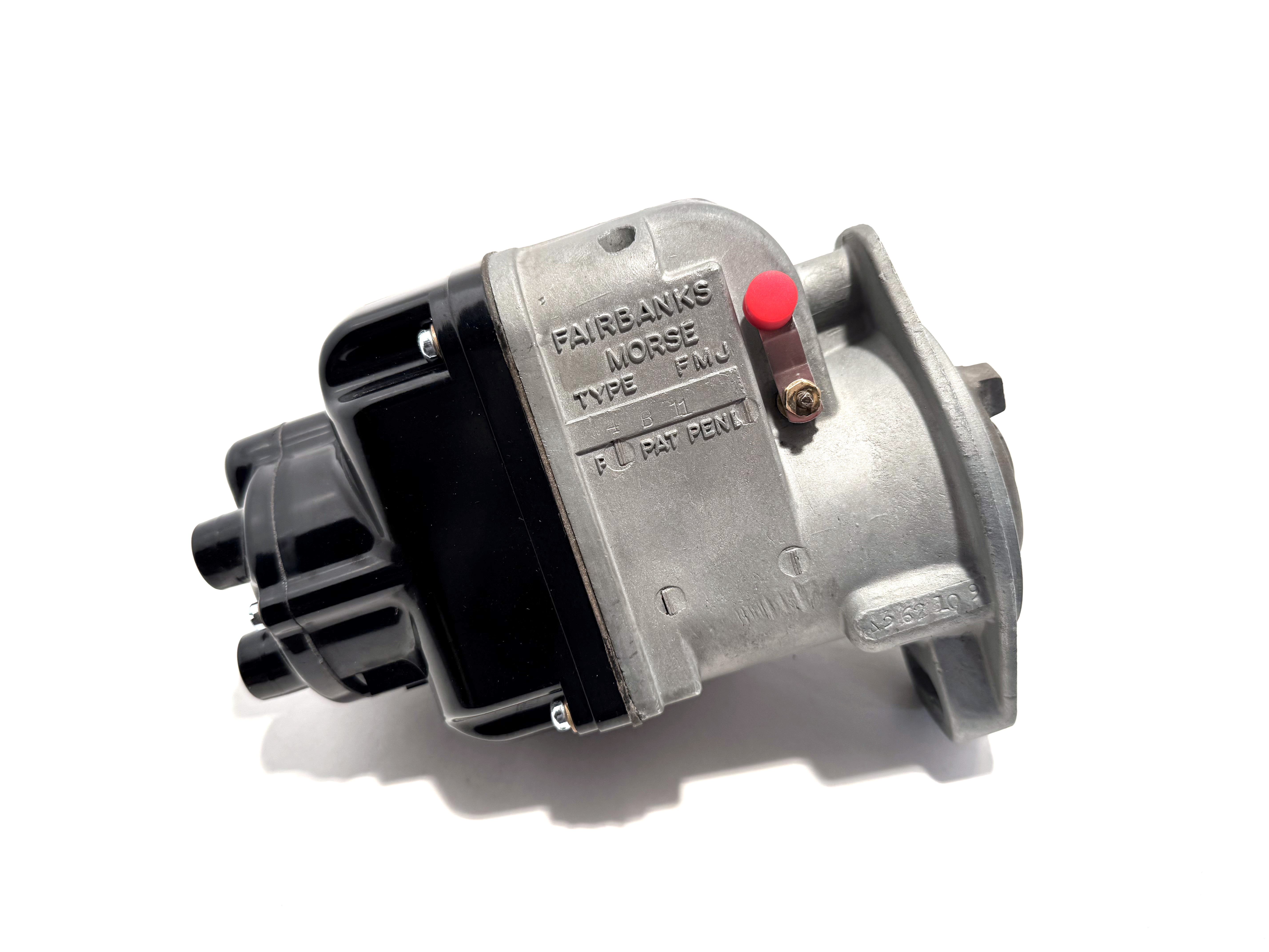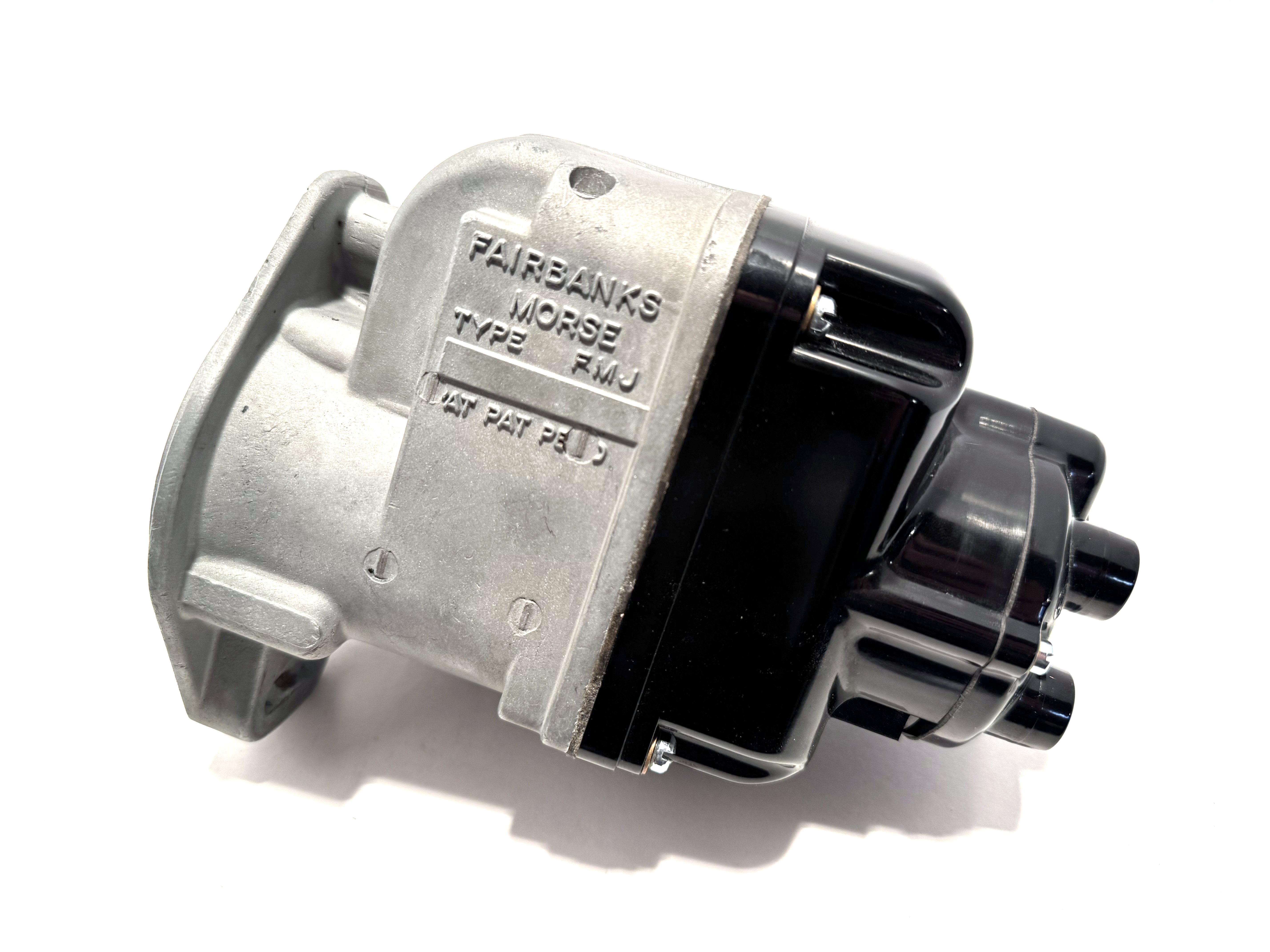 Clockwise Rotation, 35º impulse for International Harvester. This magneto was completely torn down, cleaned, and inspected. Bead blasted housing and drive coupler. Alnico magnet rotor was recharged. Bushing inspected and lubricated. Points polished. Coil tested and installed. Grounding circuit tested. 35º impulse assembly with new spring installed. In addition, the following parts were replaced: front bearing, condenser, inner cap, outer cap, gear, rotor. Fully assembled, lubricated, tested and ready to go. Mounting gasket included (not shown in photos).